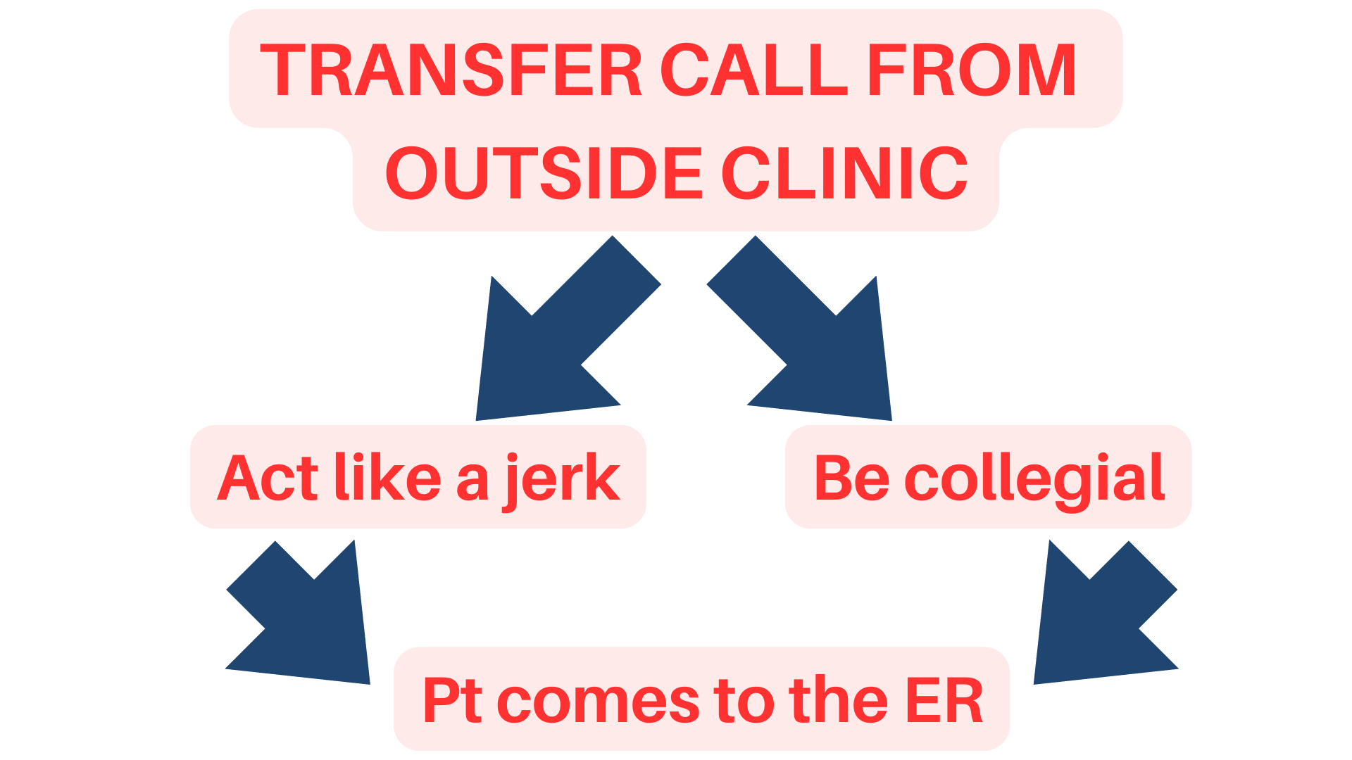 At 4:55 pm (or pick whatever time a clinic shutters), it was a different story. I wasn’t hostile, but my tone said, “Really? You’re dumping this on me now?”