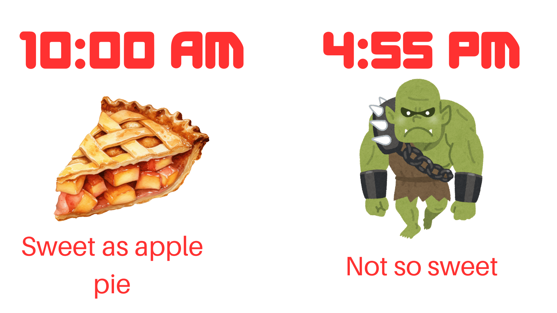 At 10 am, I was as pleasant as hot apple pie and ice cream.